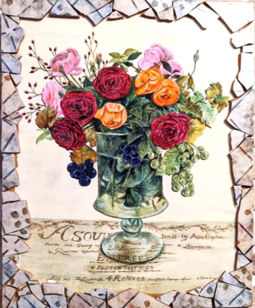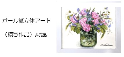 01 ボール紙立体アート本作品は、水彩画家の橋本不二子氏のカレンダーに掲載されていた作品をもとに、立体アートとして再解釈し制作した模写作品です。原作の繊細な表現を学びながら、自身の技術向上を目的として制作しております。
