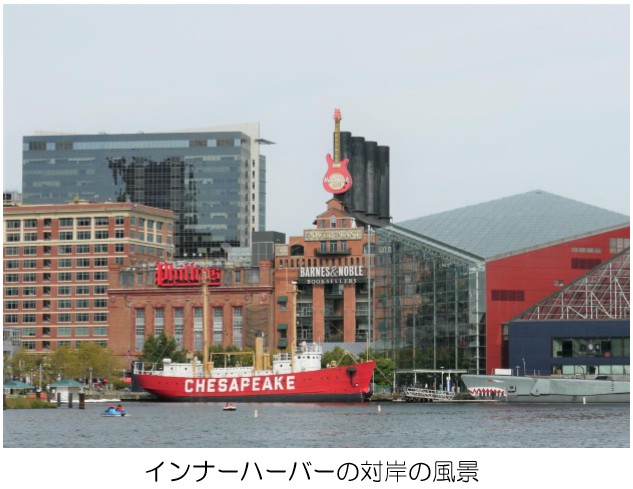 午後3時半、港町ボルチモアへ立ち寄る。インナーハーバーを30分程散策し異国情緒たっぷりの美しい港町を満喫する。ベーブルースの像の前で写真を撮り、ワシントンへ。