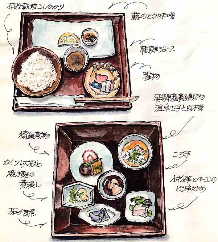 「饗家」をチェックアウト。一路高山へ。途中、松茸の直売所に立ち寄り松茸を購入する。宮川朝市でトマトやリンゴ、蜂蜜などを購入し、甘味処で休憩し善哉を食す。