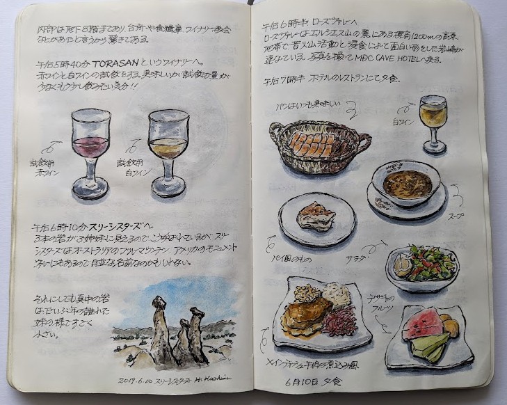 TORASANワイナリーへ。赤ワインと白ワインを試飲する。美味しいが量が少なくもう少し飲みたい気分。スリーシスターズへ。3本の岩が3姉妹に見えるのでこう呼ばれている。